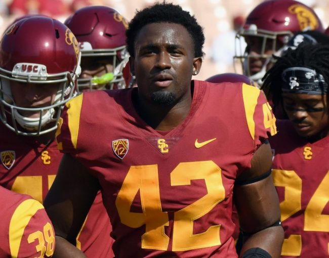 - A former USC and Jackson State linebacker was arrested on Monday over federal charges.
