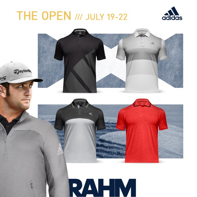 Now check out the adidas apparel DJ, Sergio, and Jon Rahm wore at this year’s British Open, U.S. Open and the Masters.