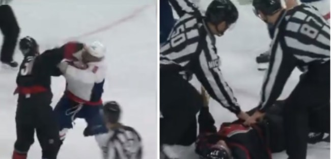Alex Ovechkin knocks out Andrei Svechnikov in a fight. Wow. pic.twitter.com/nbsxGSoRLQ