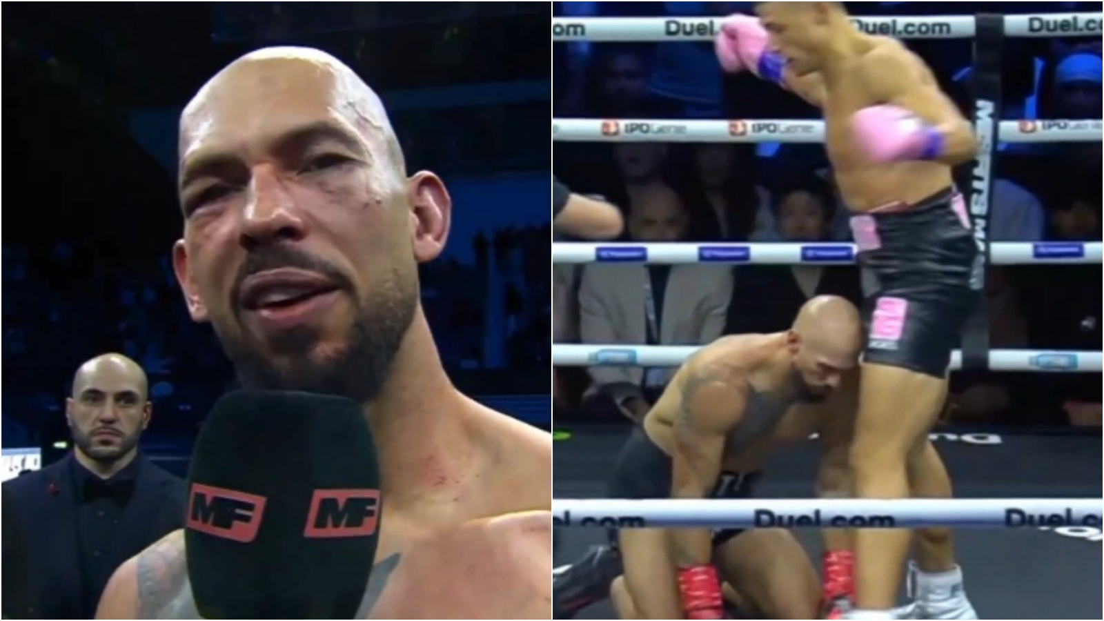 ANDREW TATE GETS KNOCKED DOWN AND STARTS BLEEDING FROM HIS EYE#AndrewTate