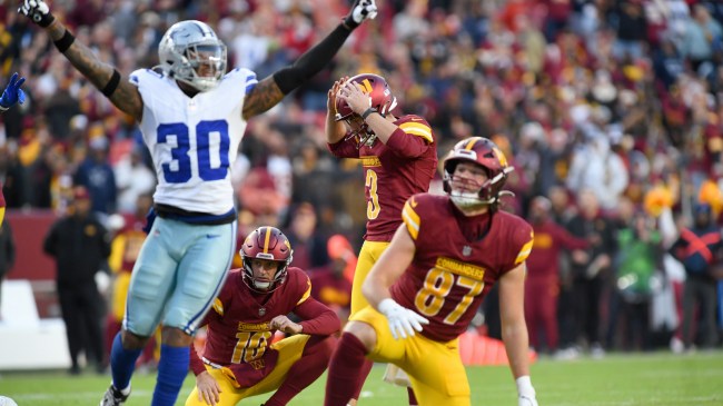 The Commanders pulled off a miracle, though. They got in field goal range quickly, and head coach Dan Quinn smartly immediately kicked a field goal. Then a quick three-and-out for Dallas gave them the ball back with 21 seconds left, setting up this play.