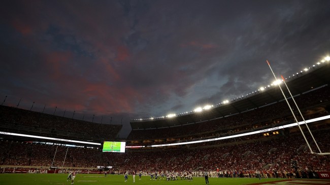 Soon, the real show would start, though, as the Crimson Tide took the field. The pregame scenes remind us all of why we love college football. The video fittingly closes with fans belting “Dixieland Delight” as a light show takes over Bryant-Denny Stadium.