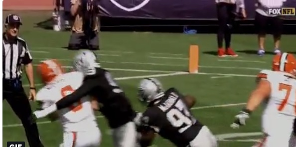 During today’s Raiders-Browns game, football fans were once again up in arms when Arden Key was penalized for barely touching Baker Mayfield.