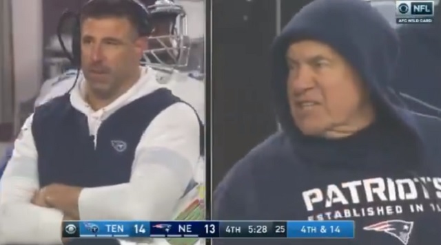 Unfortunately for Belichick, Titans head coach Mike Vrabel used that same loophole against him in the fourth quarter of the Pats-Titans playoff game to kill a ton of clock and Belichick was not happy about it.