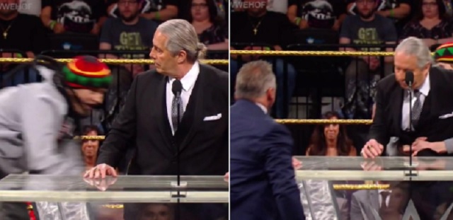 Bret Hart attacked during his speech on the Anvil …. for shoot #WWEHOF pic.twitter.com/ExhiIR8u0D