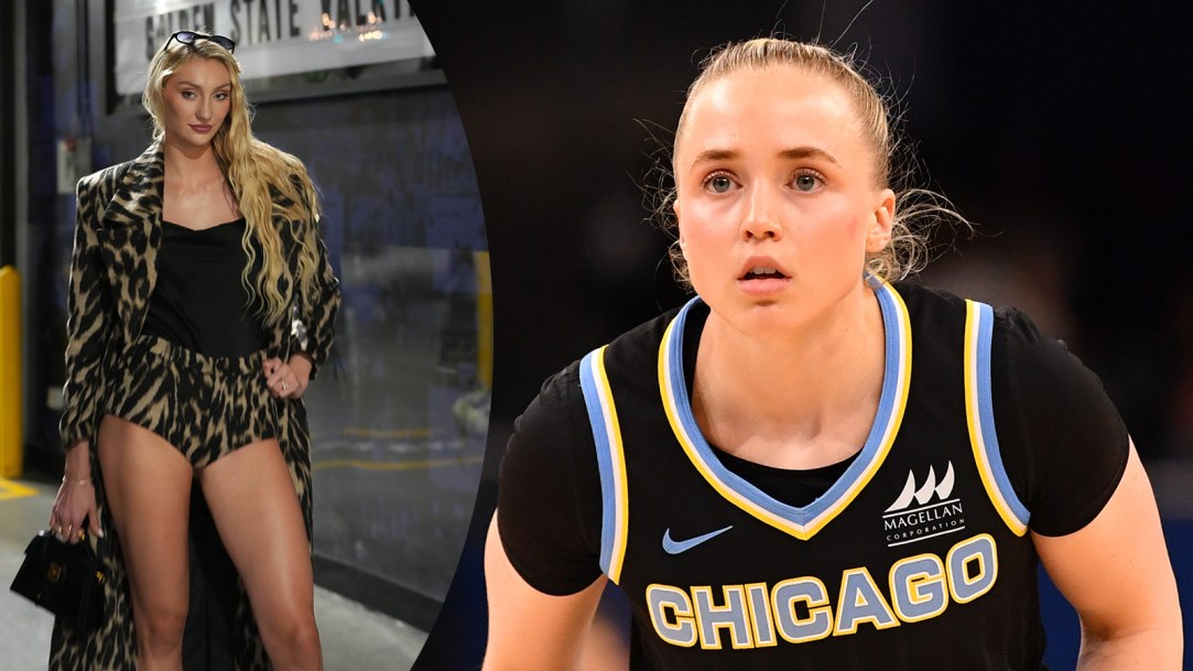 That height difference increases when Brink wears heels. She is currently working back from a torn ACL so she has yet to suit up for a game in 2025 and often uses the sideline as her own personal runway. For example: