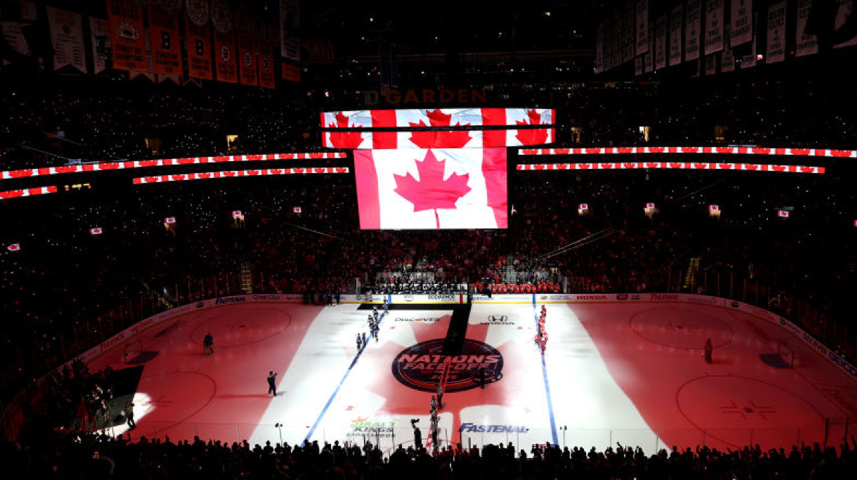 At the end of the Canadian anthem, a loud USA chant broke out in the TD Garden arena.