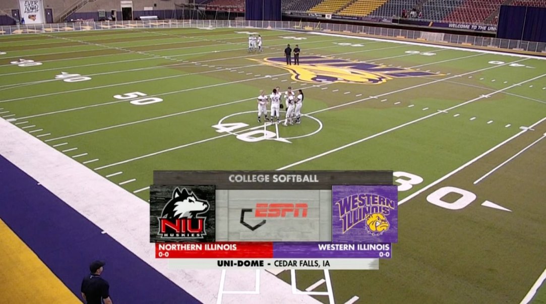 It is an indoor football stadium and it makes for the most unique, odd-looking setup in softball.