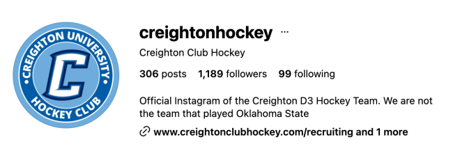 The club hockey team at Creighton updated its Instagram bio to distance itself from the ACHA team that got blown out by Oklahoma State