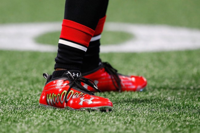 Each pair of shoes featured a portrait of Flair in addition to his trademark “WOOOOO!” Sanu gets bonus points for including multiple catchphrases, but he also loses some for deciding to use Comic Sans. With that said, it’s hard to lose when you have Ric Flair on your side.