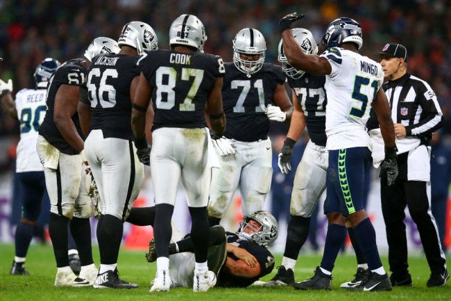 Of all the unlikely storylines that have unraveled this season–the Giants transforming into a JV team, Pat Mahomes punching his ticket to the Hall of Fame, the perpetual roughing the passer saga–quite possibly the most bizarre of them all is when Raiders QB Derek Carr seemingly broke down in tears during a London game against the Seahawks after being sacked and hurting his arm.