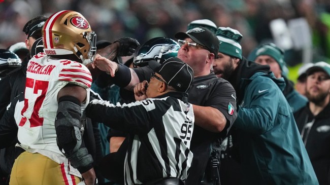 Even though he’s viewed by many Philadelphia Eagles fans as a hero, that’s not how the NFL league office is viewing team security staffer Dom DiSandro. They’ve handed out a huge fine after Disandro was involved in a scuffle on the sideline in the team’s matchup against the San Francisco 49ers on December 3rd.