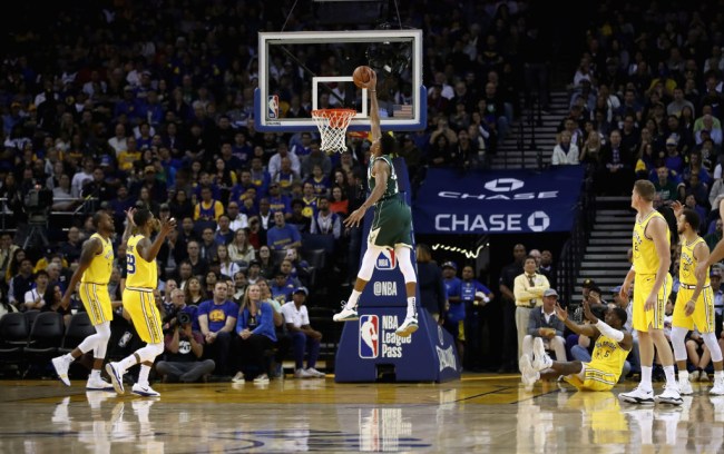 The play of the game occurred in the second quarter when Giannis out-muscled a Warriors defender en route to a thunderous, Stretch Armstrong-esque dunk. Check it out below, and wait for Draymond Green’s reaction at the end.