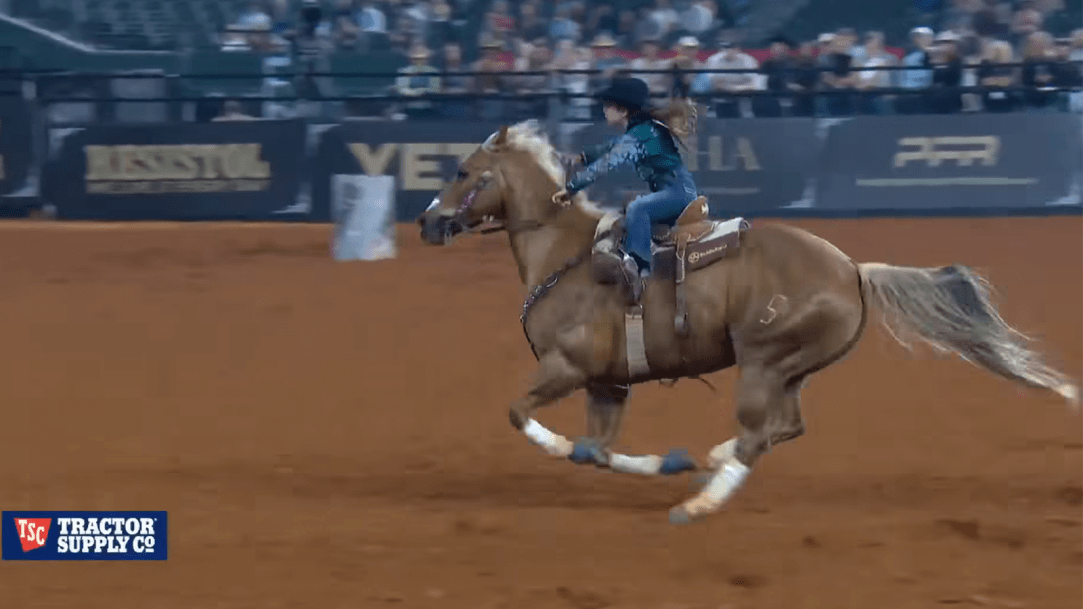 Hall set a new arena record with a time of 15.133. It sent her right to the top of the leaderboard and guaranteed that she would race for $100,000 and the $1 million bonus. The way she loved on her horse, Ain’t Seen Famous Yet, after the run will give you goosebumps. What a moment!