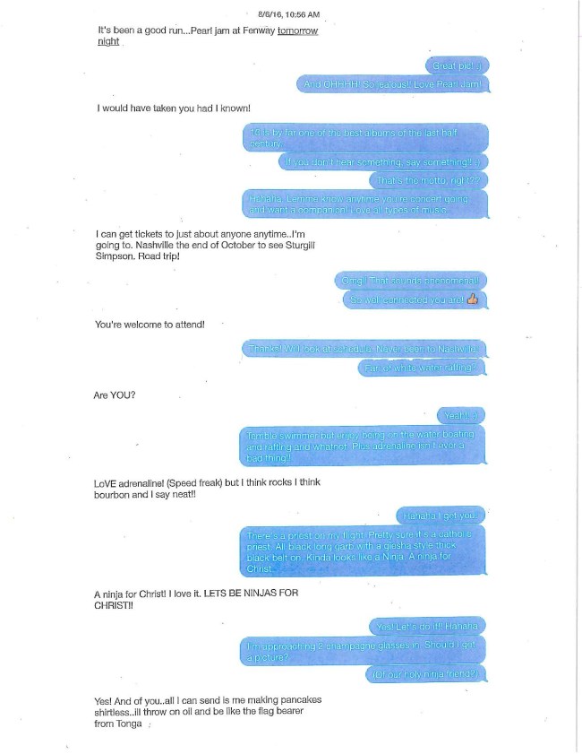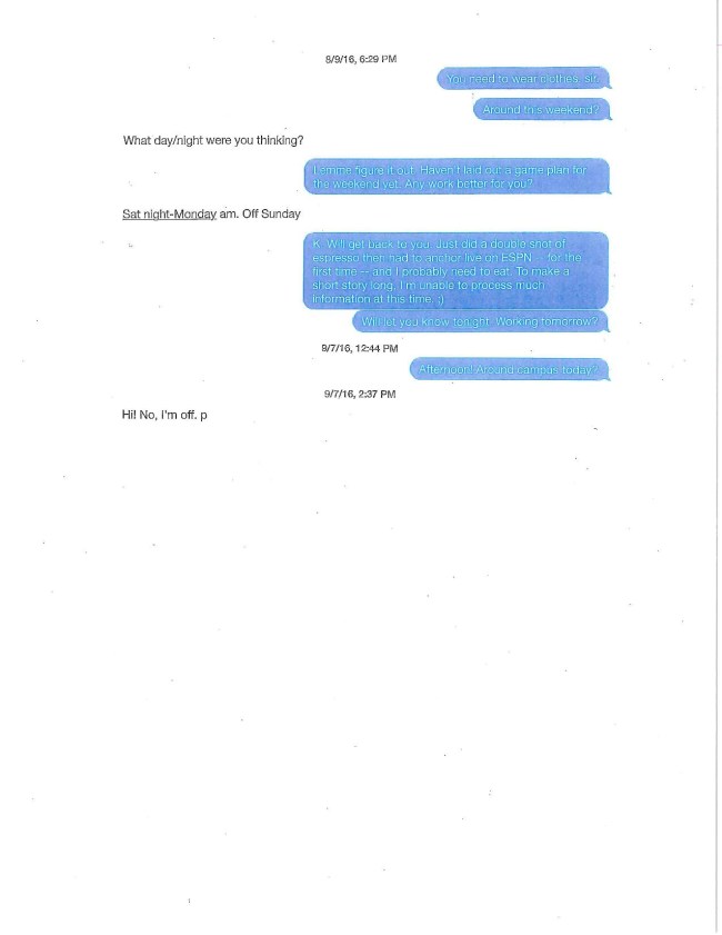 Additionally, if you consider the attached portions of text messages exchanged between Ms. Lawrence (in blue) and Mr. Buccigross, it’s clear that they had a consensual, personal friendship that spanned months.