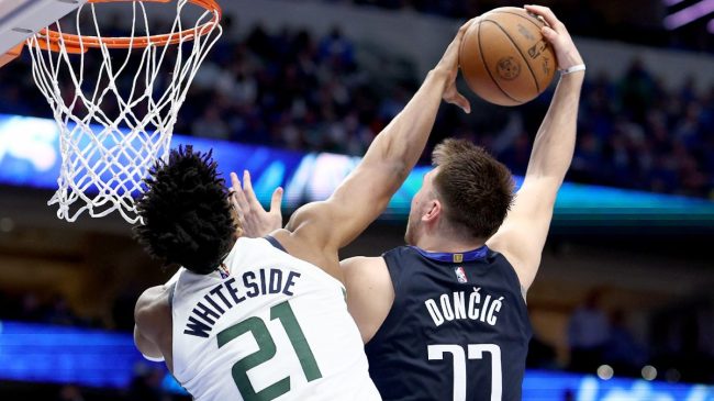 Late in the contest, with Dallas leading big, Doncic attempted to put Whiteside on a poster with an emphatic slam dunk. The jam didn’t go quite as planned for the Mavs star.
