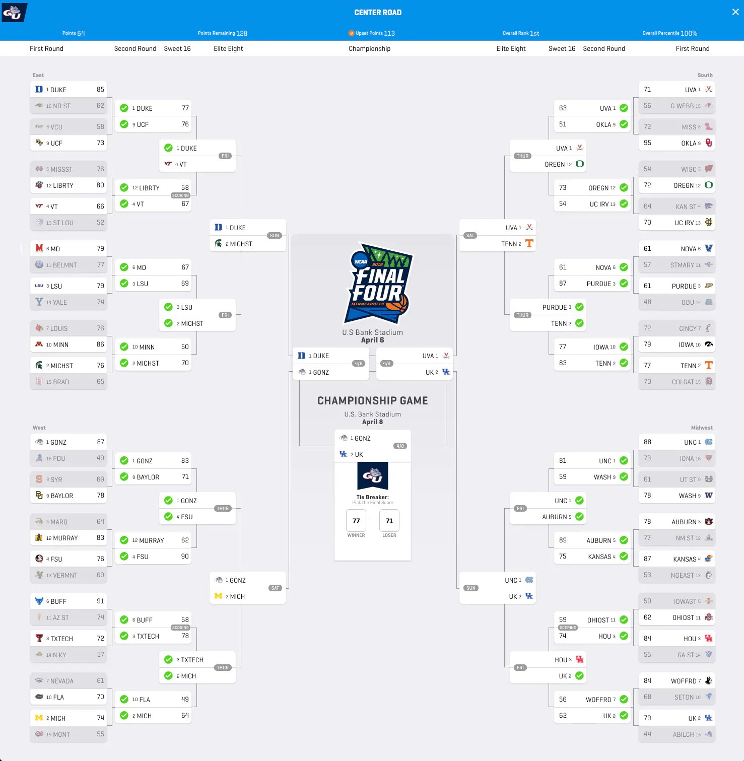 However, according to NCAA.com, there is someone who’s all alone and sitting pretty at the top of the standings thanks to having the only perfect bracket still remaining heading into the Sweet 16.