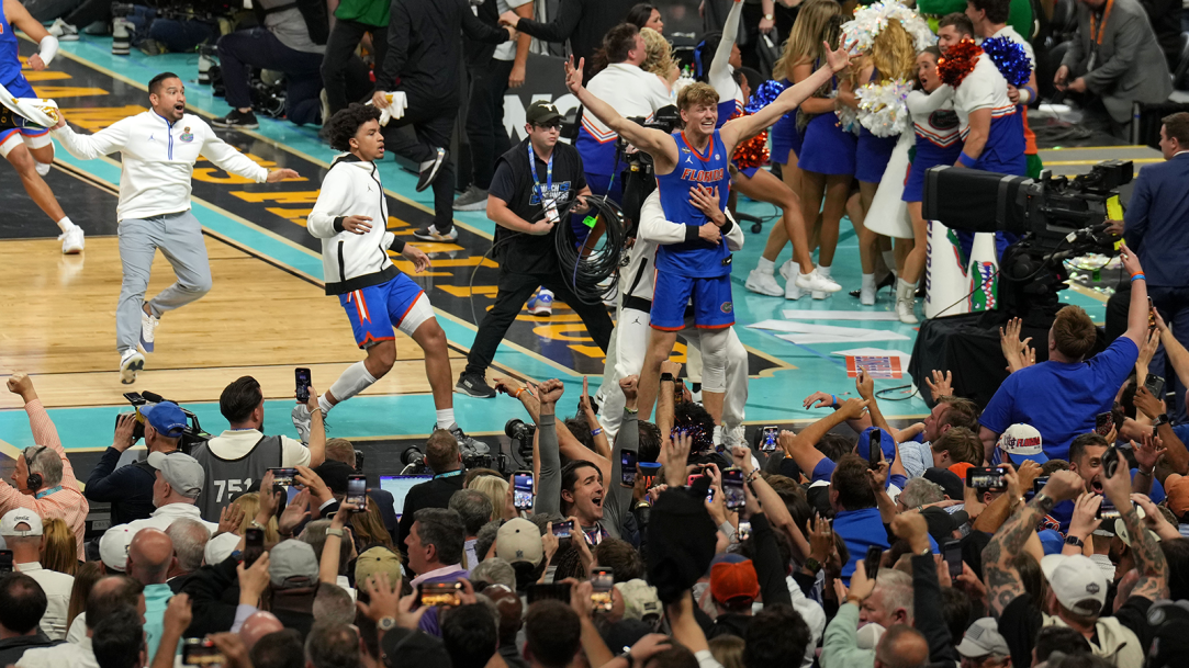 Now fast forward to Monday night. Florida won the college basketball national title. Baia was sitting floorside on media row. How was she supposed to react to such an insane finish? Completely bored?