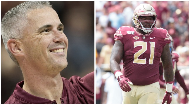 Seminoles team captain and First Team All-ACC defensive tackle Marvin Wilson called his new coach on his bullshit on social media, and announced that the team will not be taking the field until further notice as protest of Norvell’s fib.