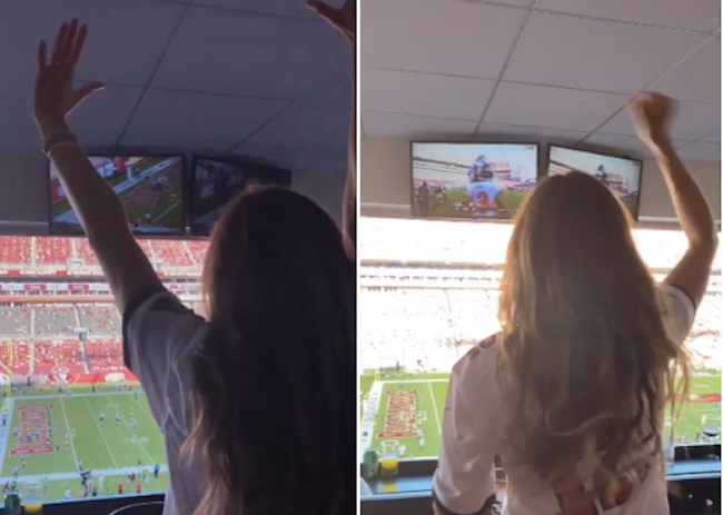 Mrs. Brady posted several updates to Twitter and Instagram, including a celebratory dance after one Bucs touchdown.