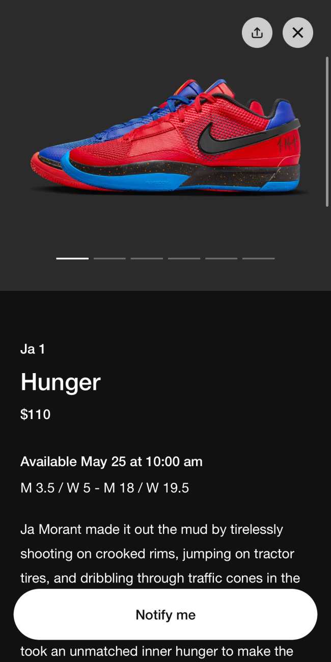 That development unfolded just a week before Nike was poised to release the “Hunger” colorway, and it’s worth noting that drop is still listed on the SNKRS app as of this writing.