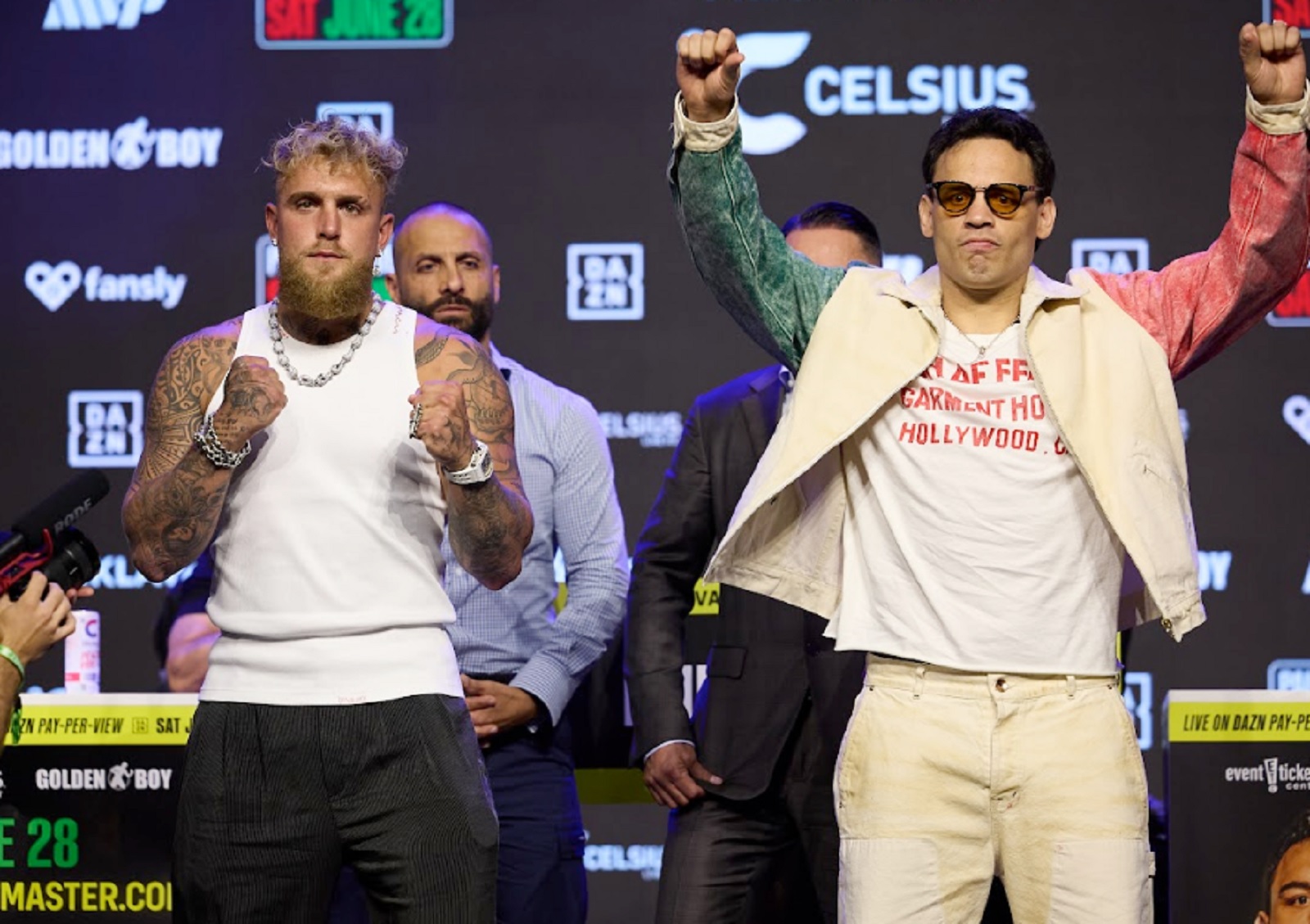 Jake Paul vs. Julio Cesar Chavez Jr. FACE OFF#PaulChavez x #RamirezDorticos | June 28 | Live Exclusively on DAZN | @MostVpromotions | @GoldenBoyBoxing | 🎟️Available to buy soon pic.twitter.com/nH9UWxu3RL