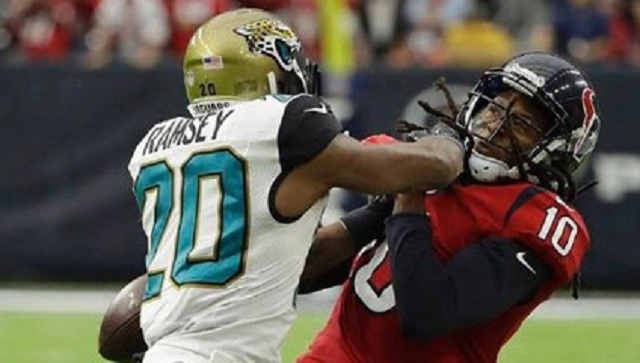 Today, Jaguars db Jalen Ramsey put up this picture of himself knocking out Texans DeAndre Hopkins with the caption ” I go hunting, put heads on my fireplace OH MY #blessed”