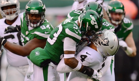 After the Jets blew out the Raiders on Sunday, Adams posted a picture of himself delivering a big hit on Raiders QB Derek Carr.