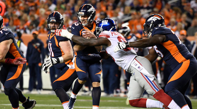 Jason Pierre-Paul recorded three sacks against the Denver Broncos on Sunday as he helped to lead the New York Giants to an improbable 23-10 victory— their first of a season that has been plagued by injuries and underwhelming performances.