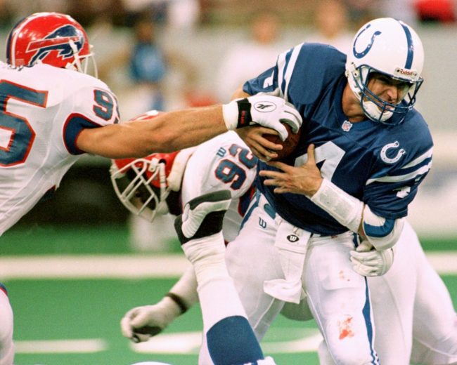 - During a 1995 playoff game, former Colts quarterback Jim Harbaugh took a hit that caused him to cough up blood.