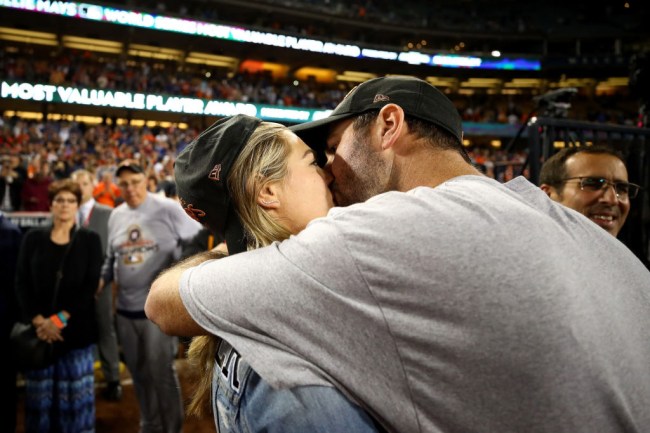So naturally, when the Astros finally closed out the World Series in game seven On Wednesday night Upton was right there on the field, wearing her custom-made “Verlander” jean jacket, to help Justin and his teammates celebrate the historic occasion.