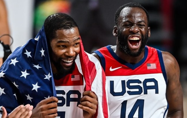 After the game, Durant went on Instagram live with Draymond Green to fire shots at those who said Team USA wasn’t going to win gold at the Olympics. During the steam, Green took aim at ESPN’s Kendrick Perkins for “talking a lot of sh*t” about Team USA.