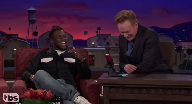 That’s because, as he told Conan O’Brien Monday night when he showed a photo of a security guard stopping Hart from getting on stage, “Well, first of all, that’s a good man. That guy did his job. Thank God. Thank God he did his job that day because I was a little thing called intoxicated.”