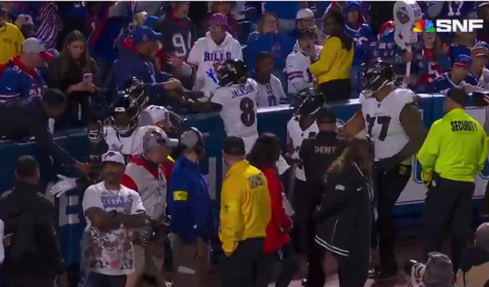 After the touchdown, a Bills fan in the stands slapped both Hopkins and Jackson on the helmet. Jackson turned around and shoved the Bills fan.