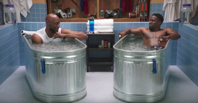 This week, Odom sat down (in a freezing cold ice tub) with our favorite drunk Super Bowl victory party crasher Kevin Hart on the season two premiere of his sports-themed interview series, Cold As Balls.
