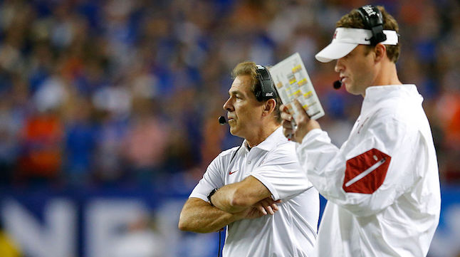 To say Alabama Crimson Tide coach Nick Saban has a rocky relationship with his former offensive coordinator Lane Kiffin would be a bit of an understatement. Saban famously relieved Kiffin of his duties prior to last year’s National Championship loss to Clemson after he decided to leave the program for Florida Atlantic, and Saban wasn’t afraid to visibly voice his displeasure with some of the OC’s decisions (however, the coach was nice enough to give Kiffin ar ride after the team bus left without him after Bama took home the title in 2016).