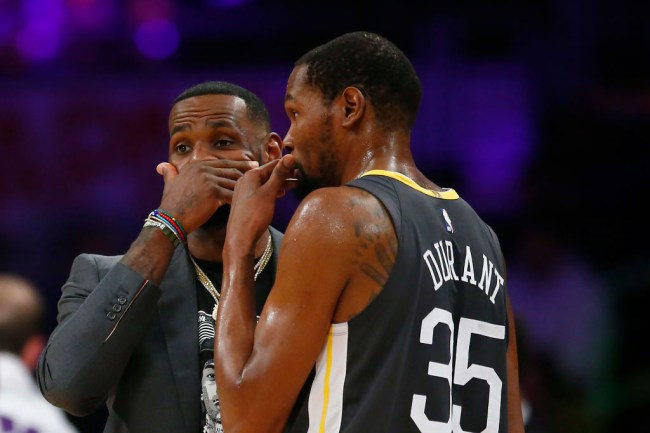 LeBron was on the sidelines last night, and during a break in the action, he decided to chat with Kevin Durant—a decision that immediately set the internet ablaze once the footage started to circulate.