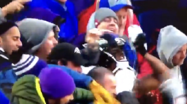 After the stop, Peters jumped into the Bills crowd and crushed a beer Stone Cold Steve Austin style to celebrate the win.