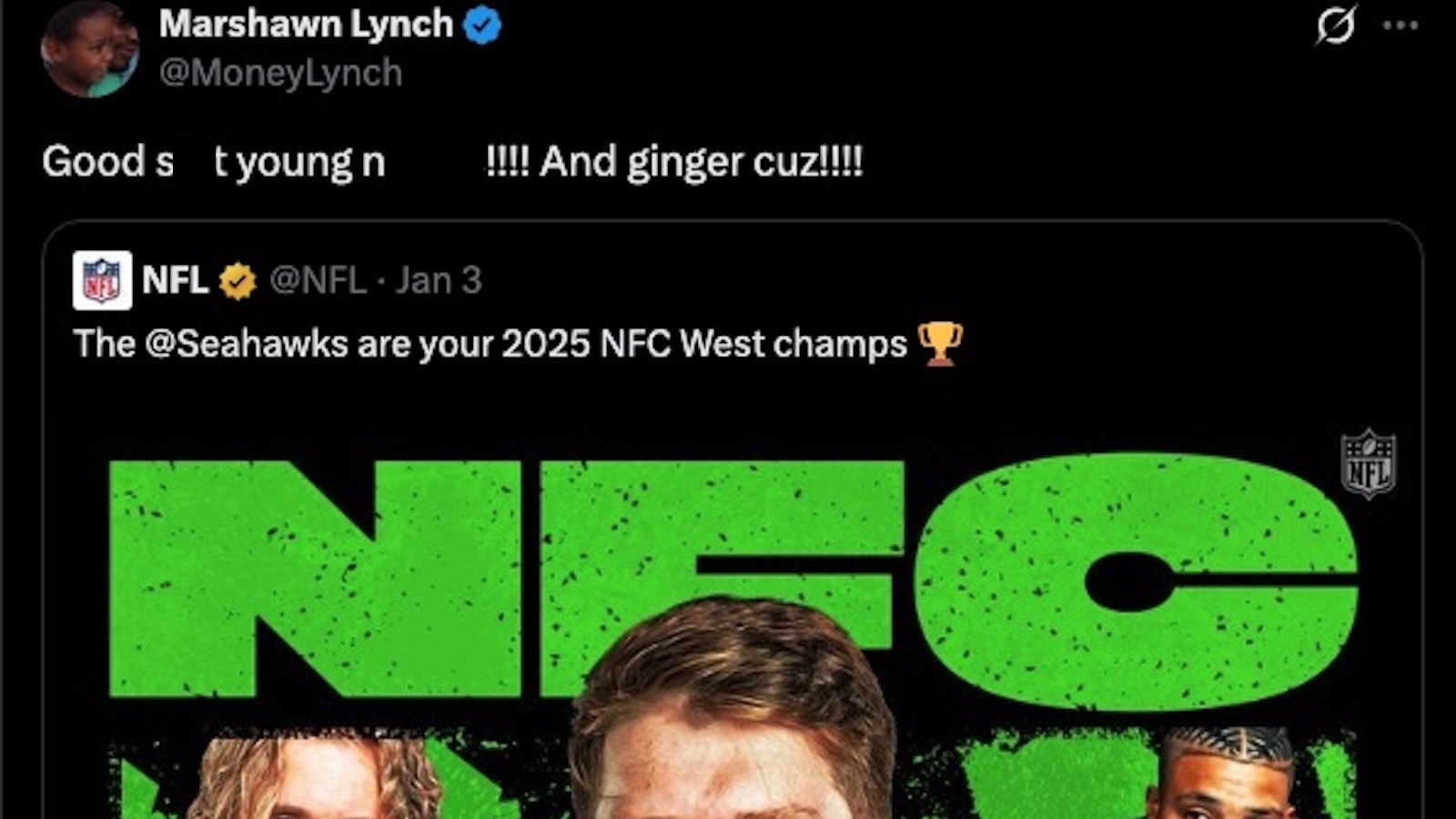 Former Seattle Seahawks running back Marshawn Lynch came up with a hilarious nickname for franchise quarterback Sam Darnold after winning the NFC West: ‘Ginger Cuz’