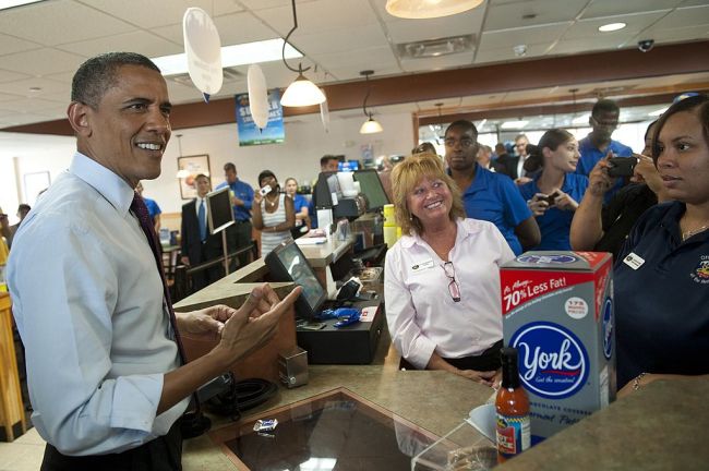 Here is Obama at Skyline Chili in Cinci, giving the “Am I On Fear Factor?” face.