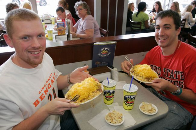 For the unenlightened Skyline Chili, founded in 1949 by Greek immigrant Nicholas Lambrinides, consists of chili, beans, onions and cheese typically served over noodles (but also hotdogs because why not).