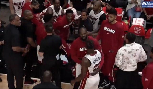 Udonis Haslem being held back as he talks to… Jimmy Butler? pic.twitter.com/FjuLn71nUK