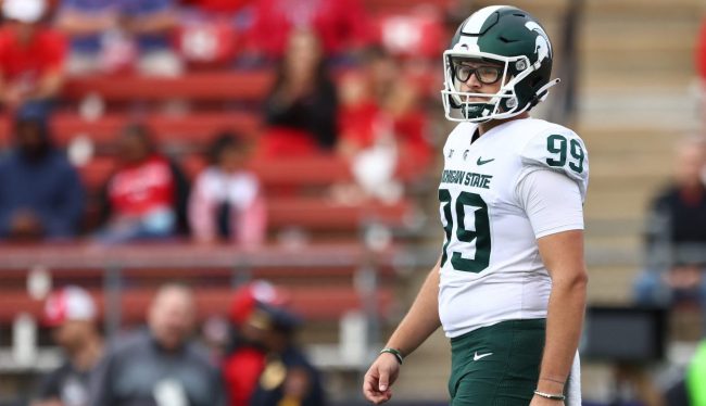 Michigan State punter Bryce Baringer will go down in college football history as a true legend of his craft. Not only is he really, really good at what he does, but he has an iconic look.