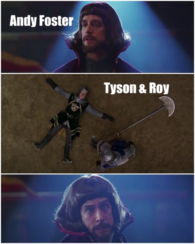 Just as Andy Dick expected a little clean family fun between Chip Douglas and Steven Kovacs at Medieval Times but instead nearly witnessed a bloody beheading, Mr. Foster has obviously not been following the plot for the last three decades and he may get blood on his hands for it.