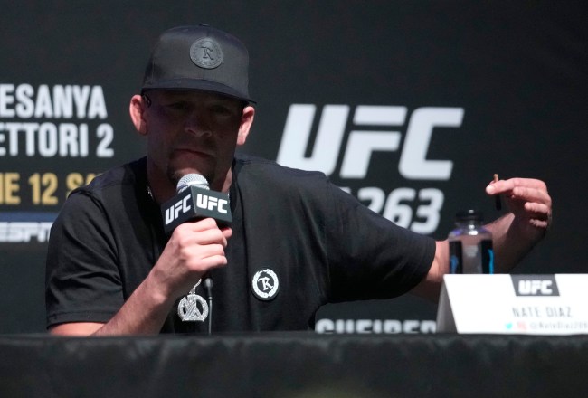 Nate Diaz sparking up a joint during the UFC 263 press conference. Legend (via @_EmmanuelMorgan) pic.twitter.com/UWOwiWx2cN