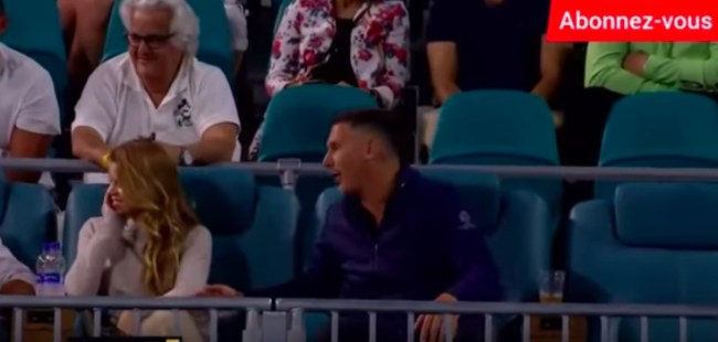 An umpire tried to settle down the bickering for three whole points, but it ended with the spectator flipping the tennis star the double birds before being escorted out by security. As for the girl he was sitting next to, she didn’t leave with him.