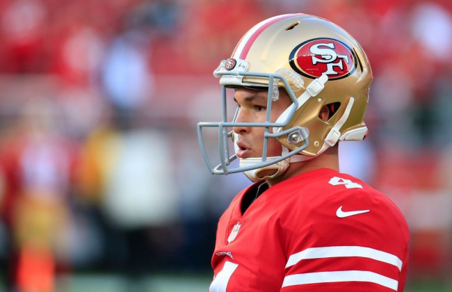 San Francisco decided to turn to Nick Mullens, who’s been chilling on the practice squad for the past year or so and once had a doctor tape up his hand after he discovered a bone sticking out of his thumb following a play.