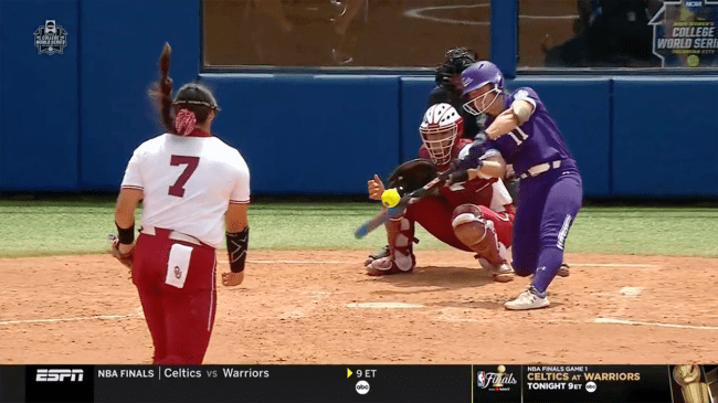 Although they were matched with Oklahoma, which might be the greatest dynasty across all sports on all levels in history, Lewis was not intimidated. She stepped up to the plate in the third inning of a 0-0 game and blasted her 23rd home run of the season to left field.