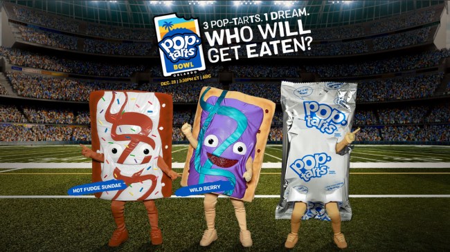 According to a press release, this year’s Pop-Tarts Bowl with feature three mascots: Hot Fudge Sunday, Wild Berry, and an as-of-yet unannounced mystery flavor. All three of them will be vying for the chance to meet the same fate as Strawberry, but the final decision will come down to the player who ends up being named the game’s MVP.