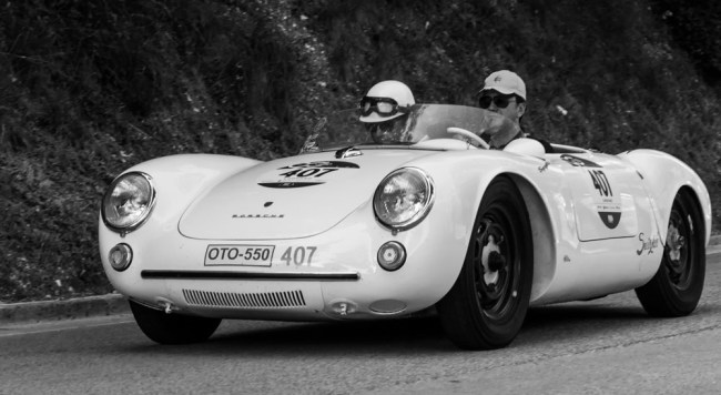 The 550 Spyder was the first Porsche designed specifically for use in auto racing. Introduced at the 1953 Paris Auto Show, the 550 Spyder gave Porsche its very first overall win in a major sports car racing event, the 1956 Targa Florio.